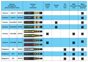 Our hydraulic hose inventory features Bridgestone and Intertraco products, ranging from single wire-braided hoses to six high-tensile steel spiral hoses, capable of withstanding working pressures up to 450 bar. We offer hydraulic hoses and fittings in sizes up to 3 inches in bore diameter.